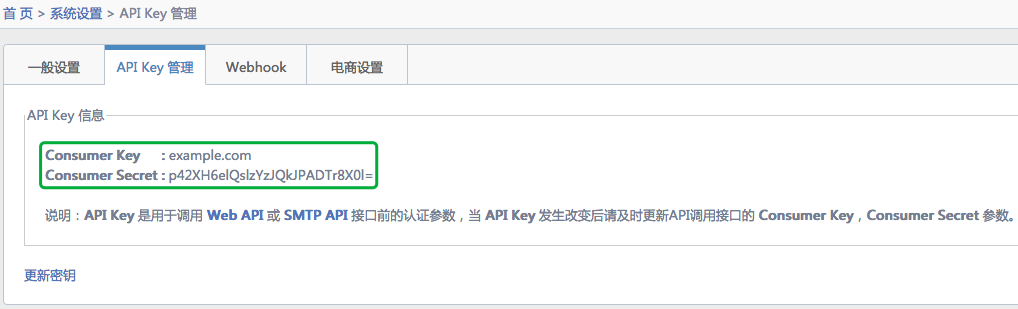 - 找到API Key的Consumer Key和Consumer Secret后,就可以调用SMTP和RESTful接口了。