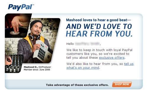 案例四中,PayPal通过倾听客户心声、增进与客户沟通的方式来关怀客户,同时告知收件人,PayPal会有针对性的为客户提供独享实惠,从而激活不活跃客户。